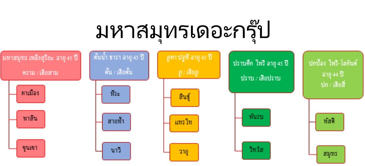 1.) คราม – มหาสมุทร เพลิงสุริยะ เจ้าของบริษัทเพลิงสุริยะกรุ๊ปในเครือมหาสมุทรเดอะกรุ๊ปและเป็นเจ้าของโรงพยาบาลมหาสมุทรเดอะกรุ๊ป เขาเป็นลูกเขยของบ้านมเหศวร มีภรรยาชื่อ ฟาง - มายวี และมีลูกชาย 1 คน คือ ซัน - สุริยะ อายุ 8 ปี และเขามีพี่ชาย 2 คน คือ รามสูรกับธามไท ตระกูลโลกันต์ และเขามีน้องรหัสก็คือปกป้อง