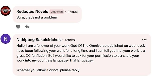 คำอณุญาติในการแปลนิยายจากเจ้าของผลงาน