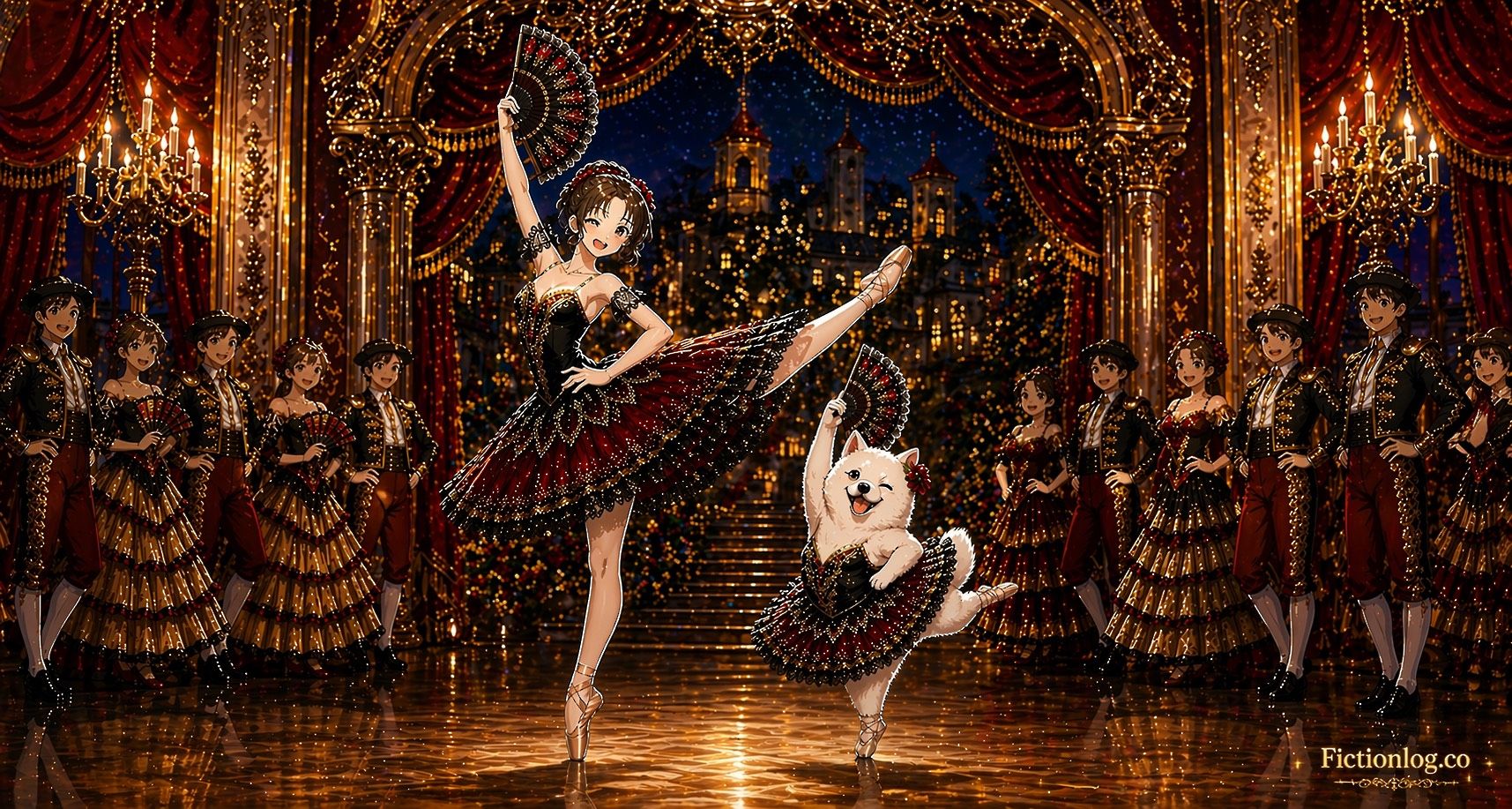 Hana the Shiba Inu drifted into a beautiful dream. She saw Sena dancing gracefully as Kitri — the innkeeper's daughter who fell deeply in love with Basilio, a humble barber. Though Kitri's father wished her to marry the wealthy Gamache, the two lovers refused to give up. Along the way, the dreamy knight Don Quixote mistook Kitri for his beloved Dulcinea, bringing both chaos and laughter to their journey. Even after Basilio's dramatic fake death, true love prevailed — and Kitri and Basilio married joyfully at last.